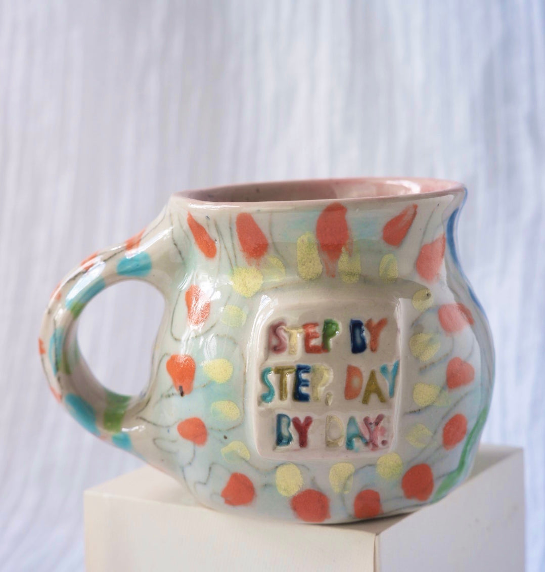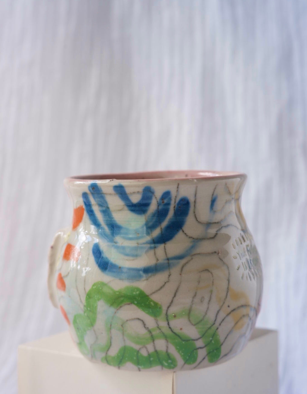 Wheel thrown, hand painted stoneware clay