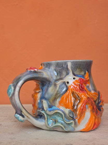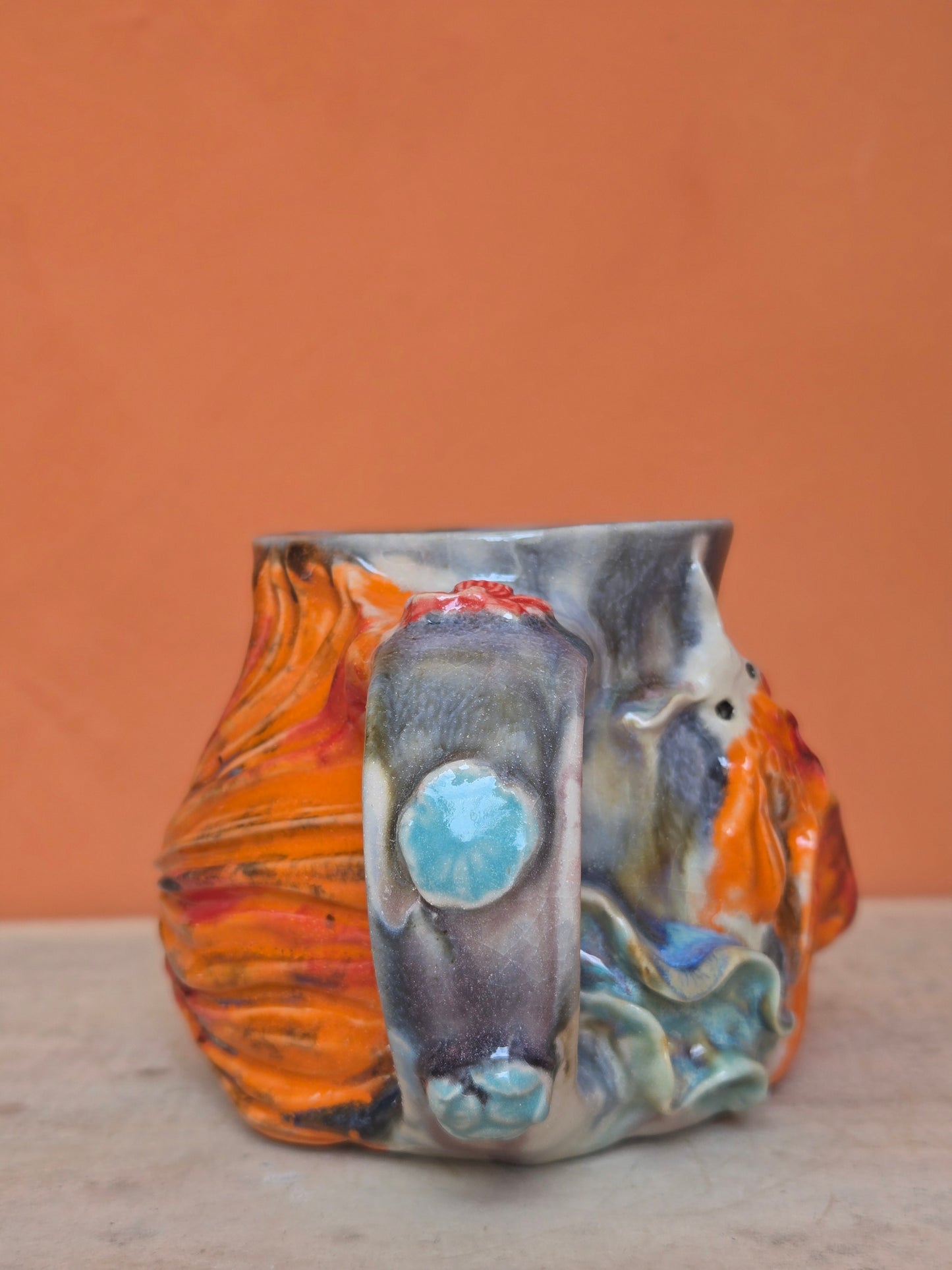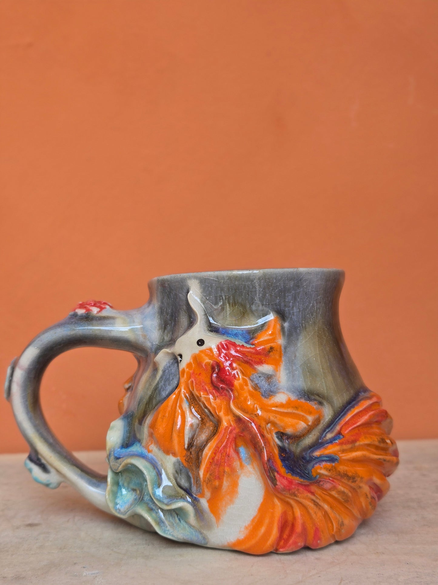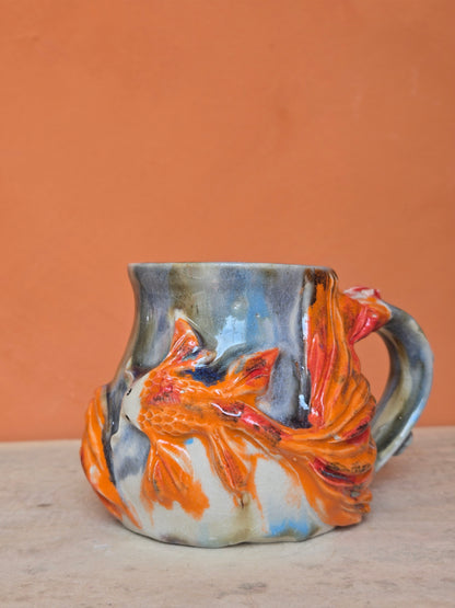 🔴 🟠 Orange & Red Koi with water lilies and lotus bloom (discounted)